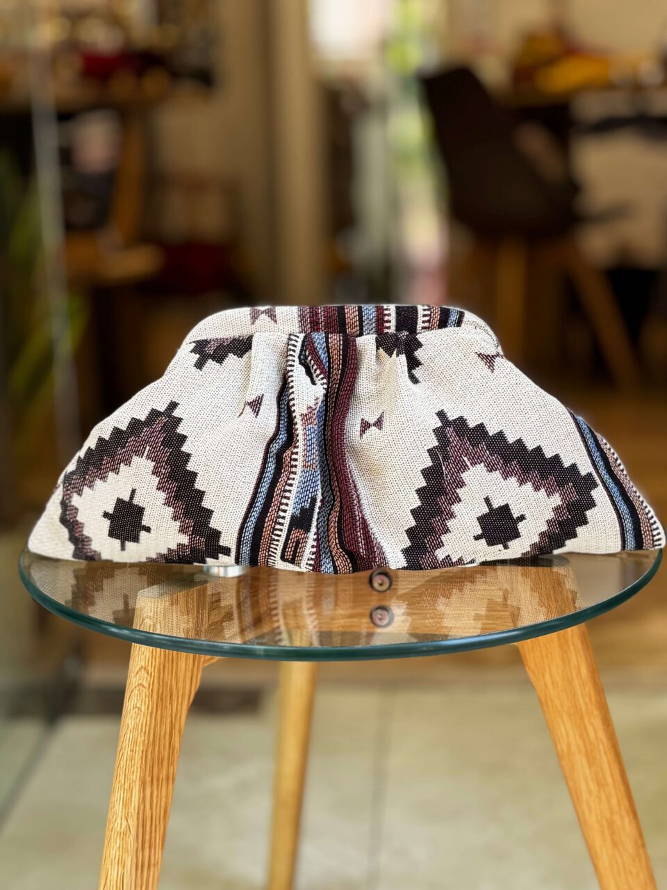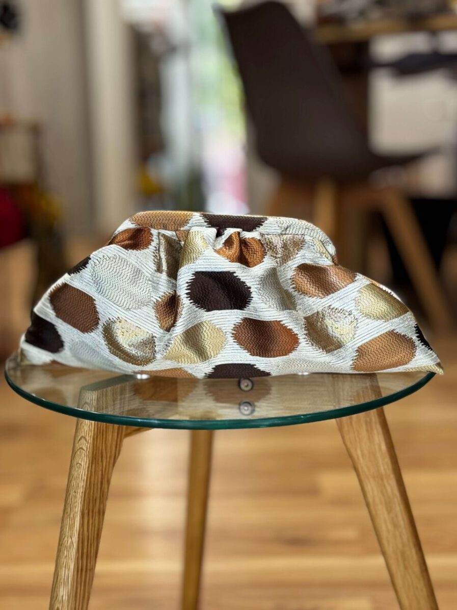 Bolso de mano hecho en tejido de microfibra, lo que se denomina cuero vegano