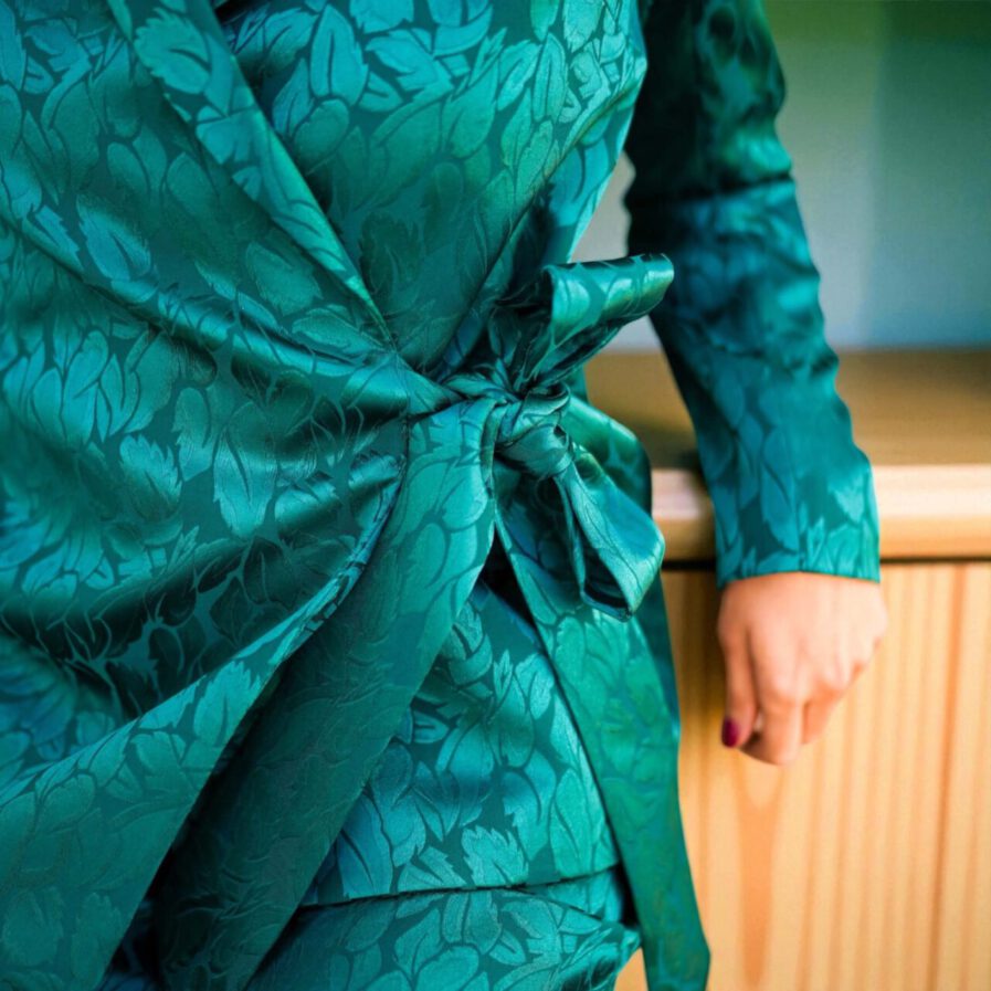 Para mantener la calidad del tejido y los detalles del conjunto, se recomienda seguir las instrucciones de cuidado específicas proporcionadas en la etiqueta del producto.