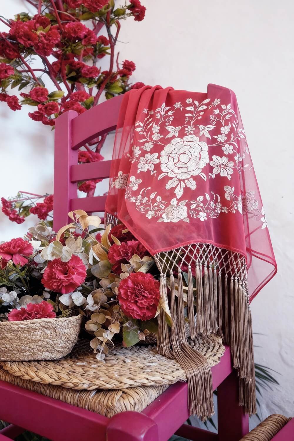 Su caída ligera permite colocarlo con facilidad sobre los hombros, adaptándose a tu forma de vestir y a cada momento de la celebración. Es el complemento ideal para completar tu look de feria con personalidad, pero también para reinterpretarlo en estilismos más actuales, combinándolo con vestidos lisos o conjuntos más sencillos.